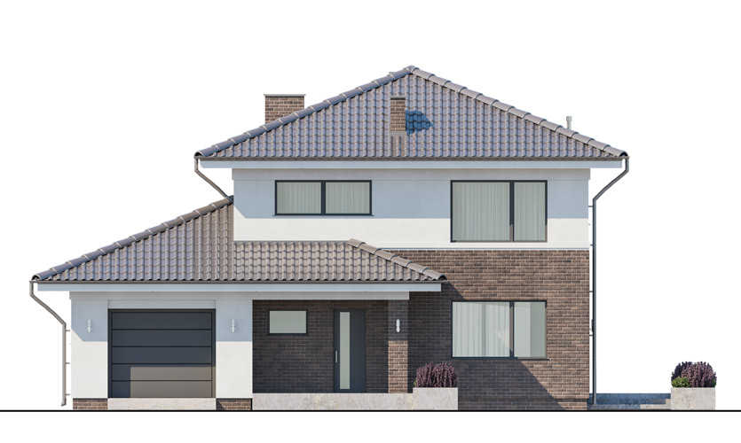 Проект двухэтажного дома с гаражом на 2 авто и большим балконом GENT-2