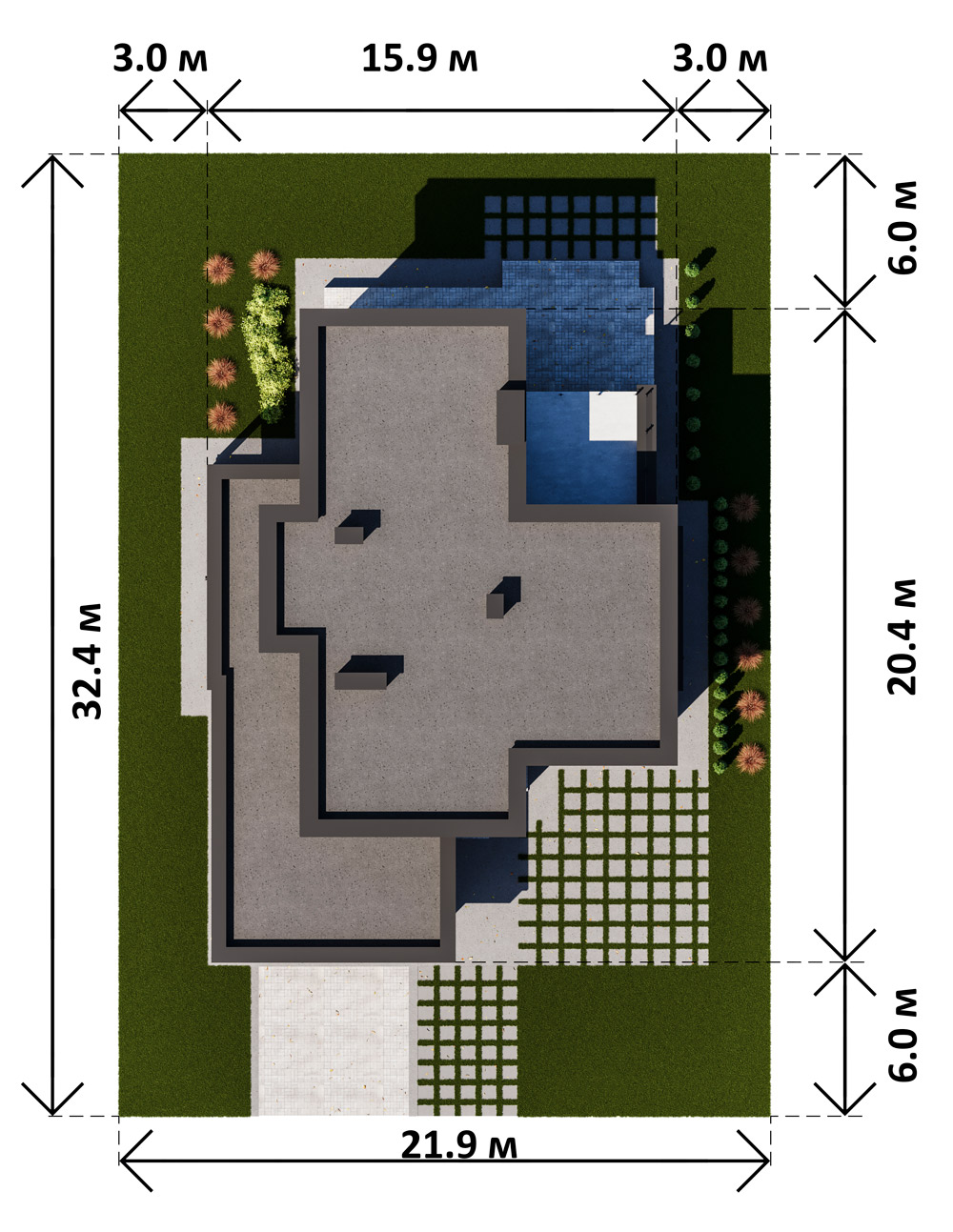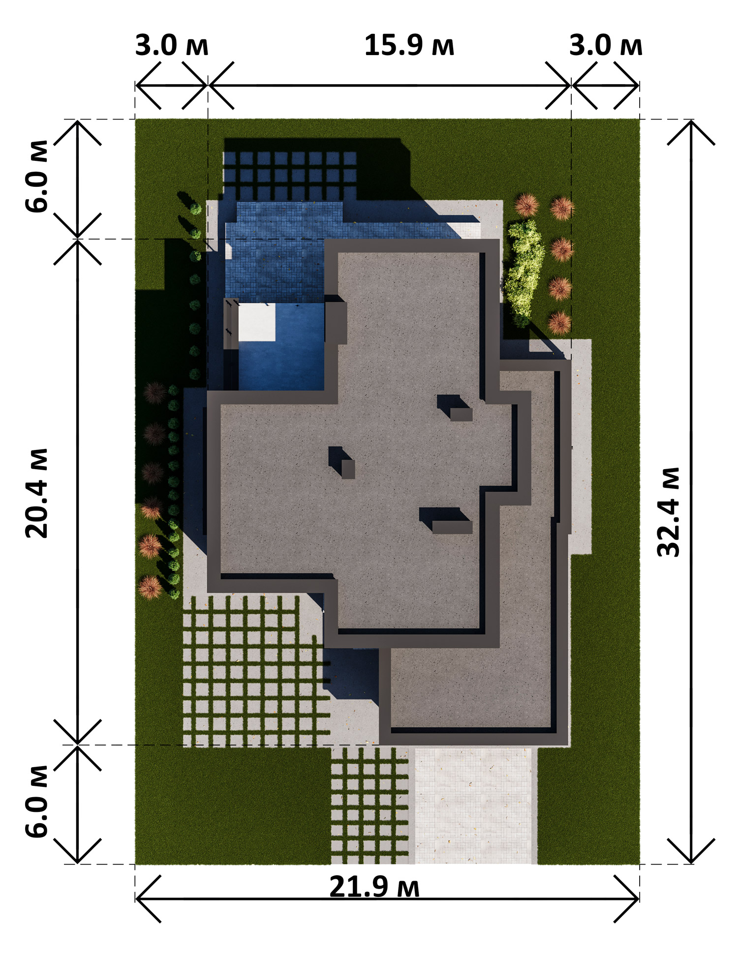 Площадь застройки: 265.9 м Размеры участка: 32,4 х 22 м Строительный объем: 1447 м Срок подготовки проекта: 3-5 днейСтроительство: ~ 454 680 BYN