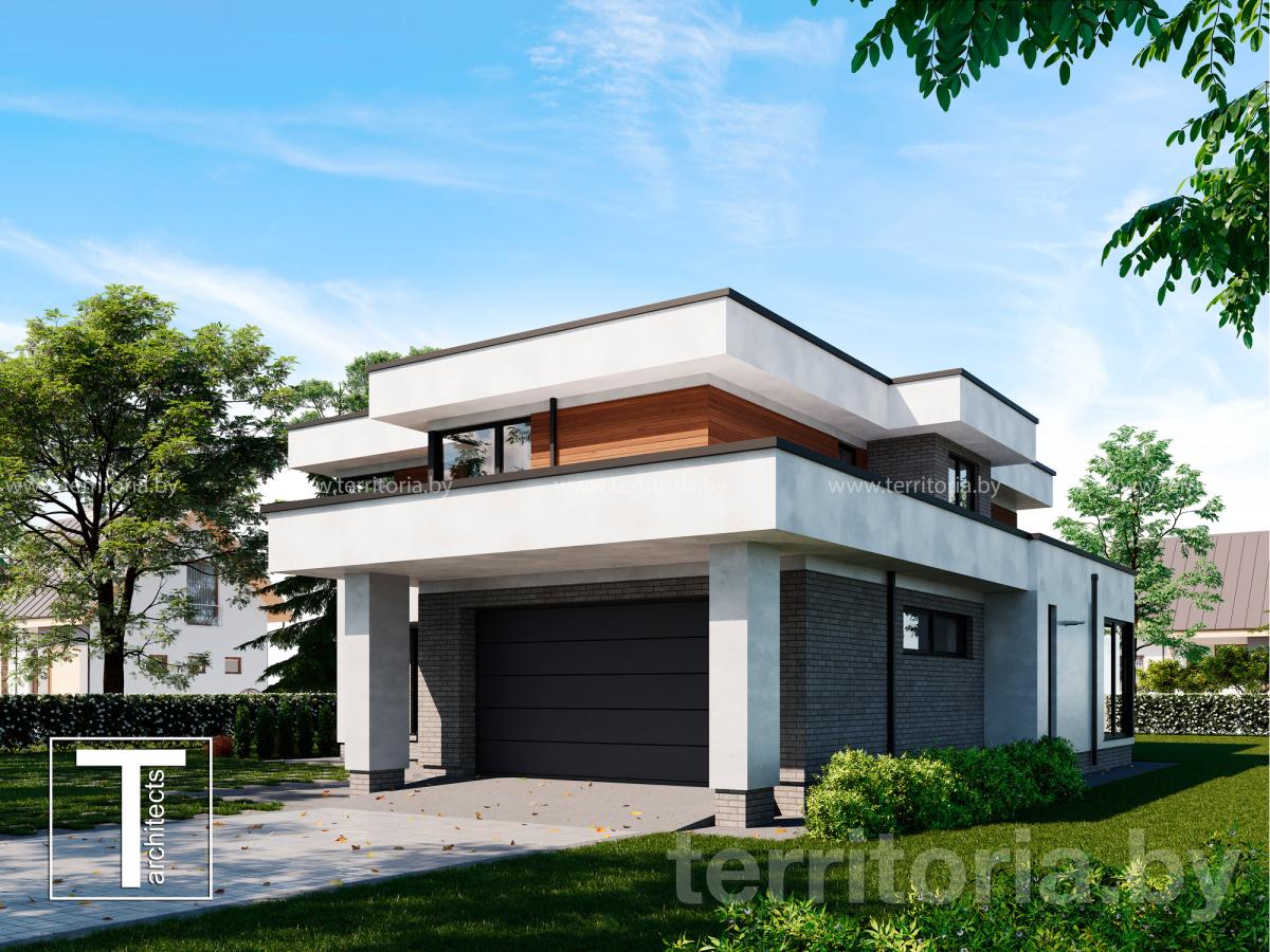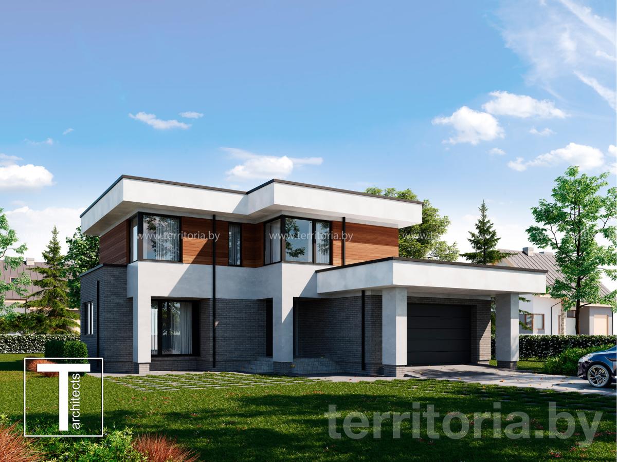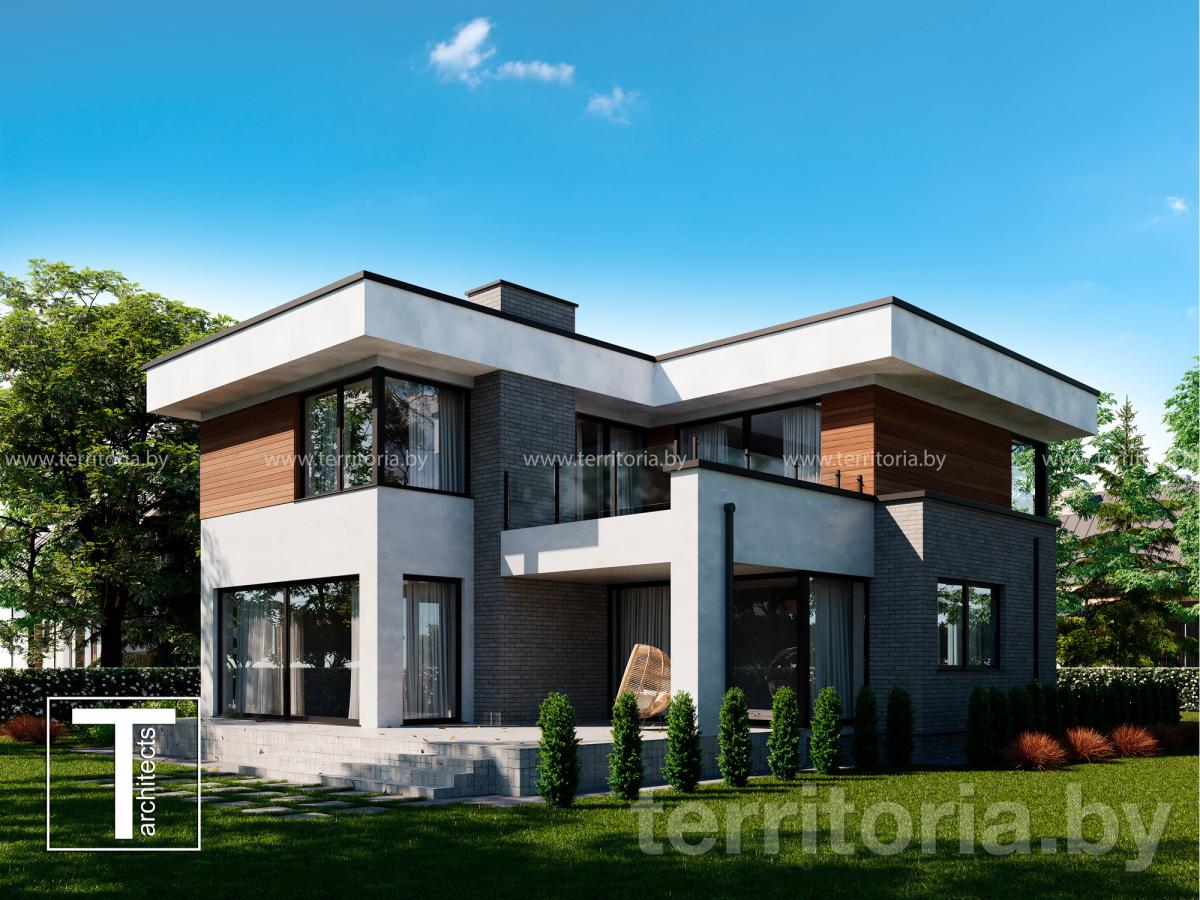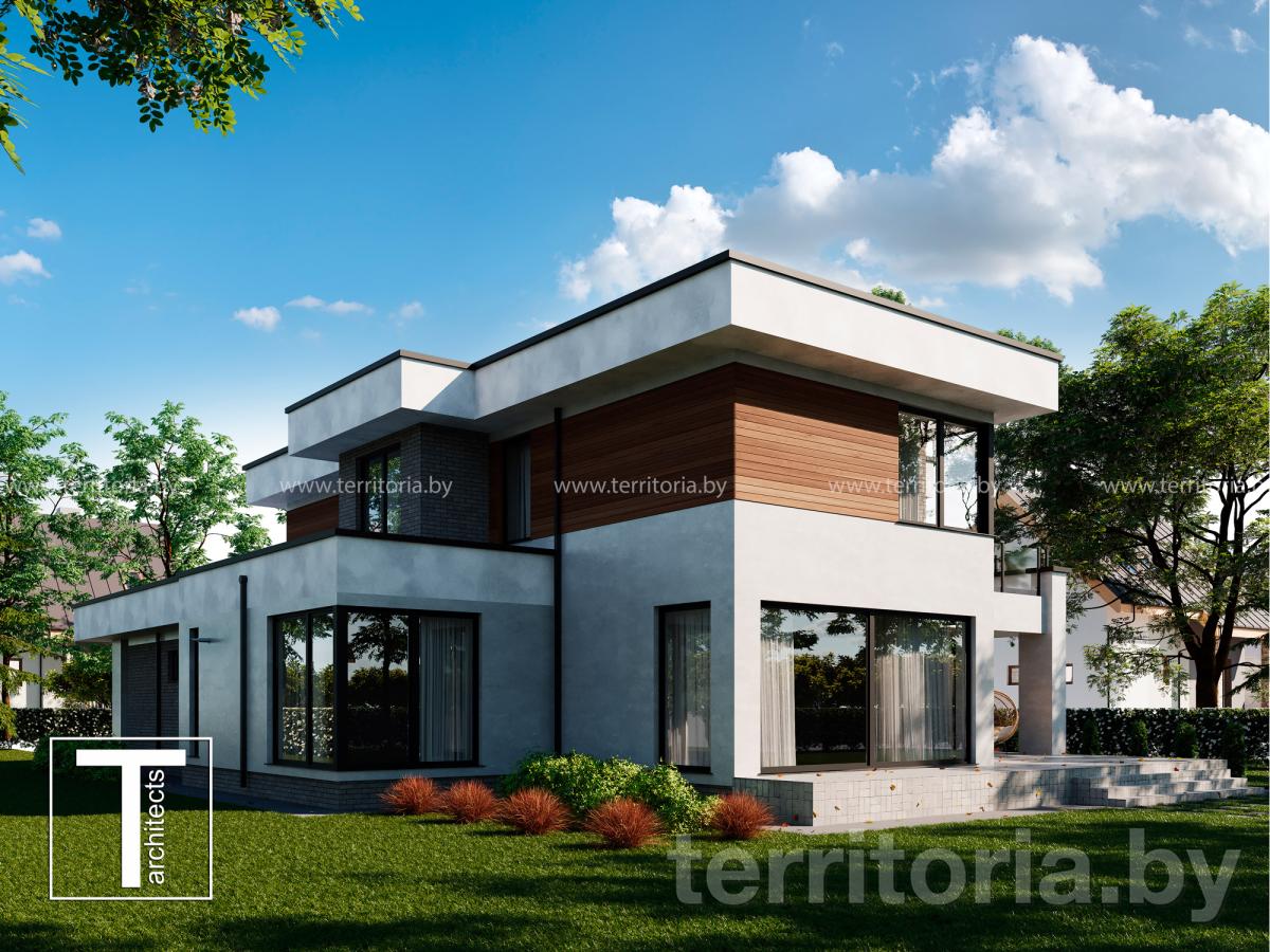 Проект современного двухэтажного дома с плоской крышей КОПЕНГАГЕН