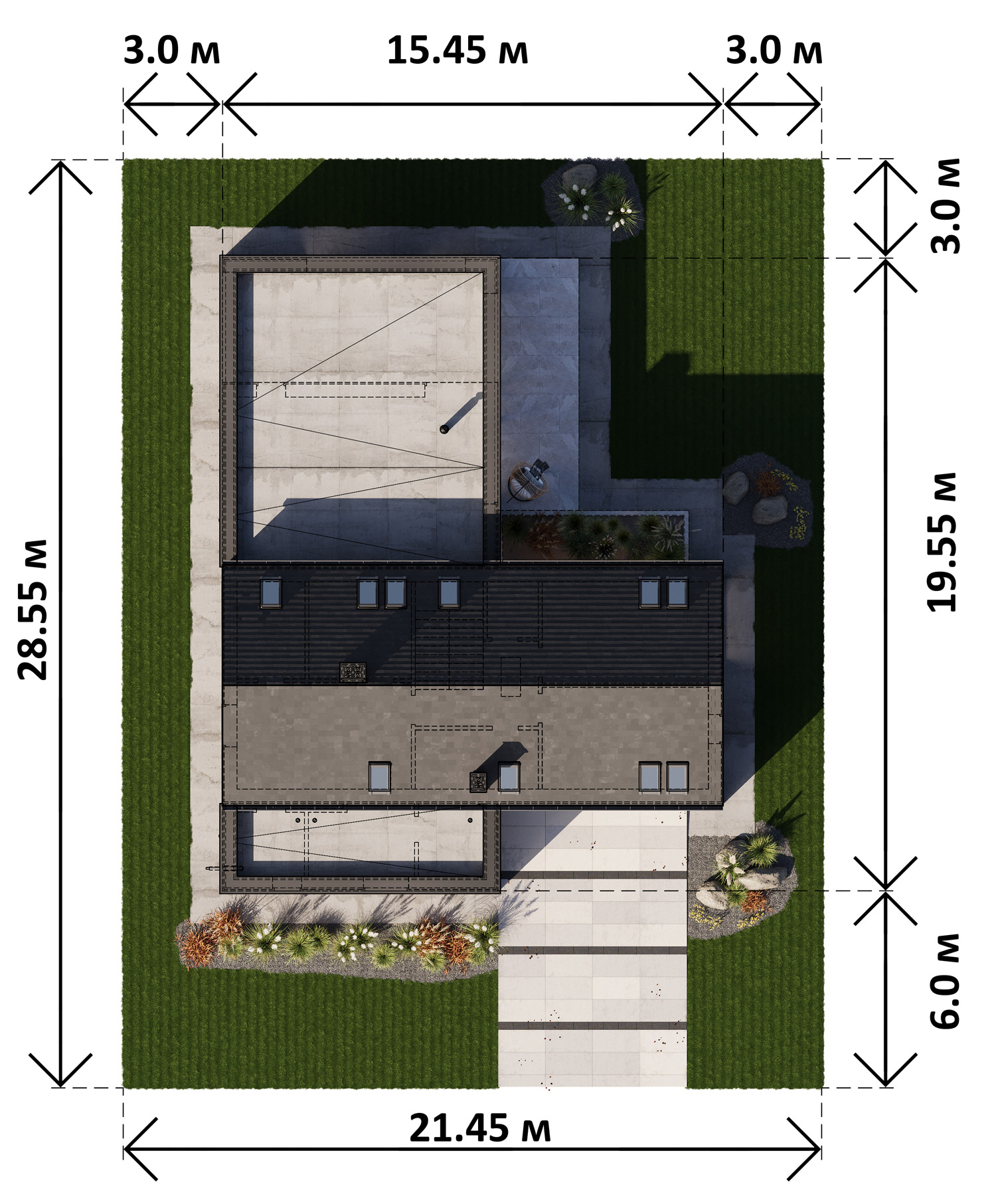 Площадь кровли: 230 м Тип кровли: Двухскатная / Плоская Угол кровли (град.): 40 Высота в коньке: 8.5 м Тип отопления: