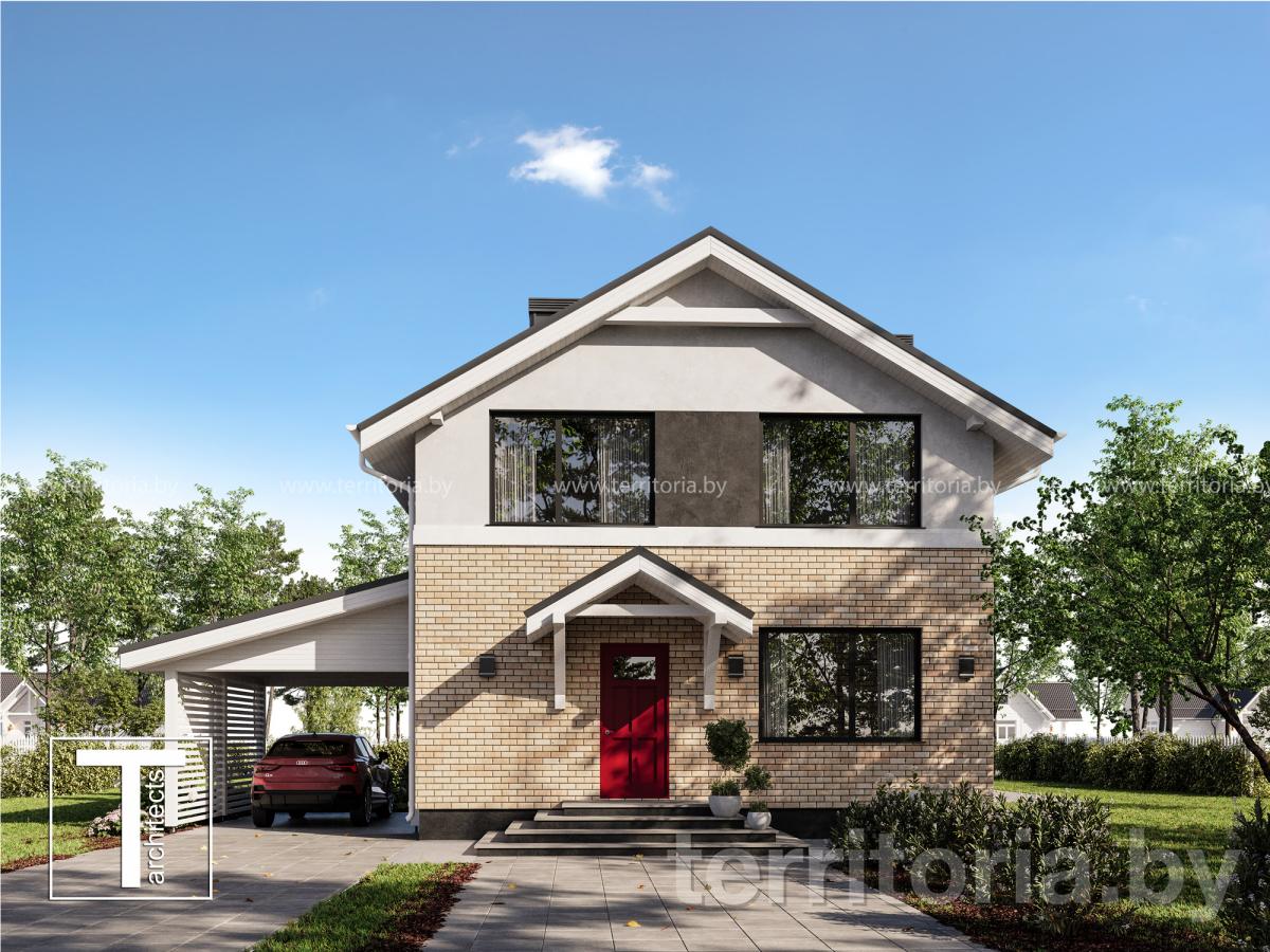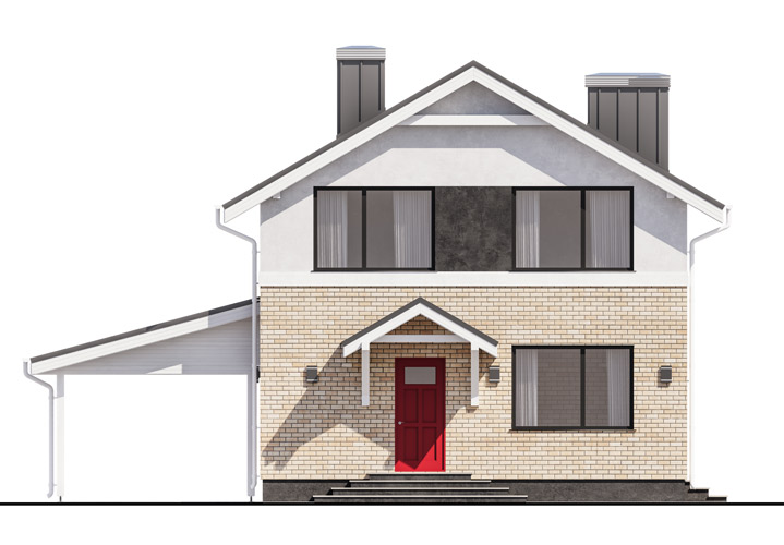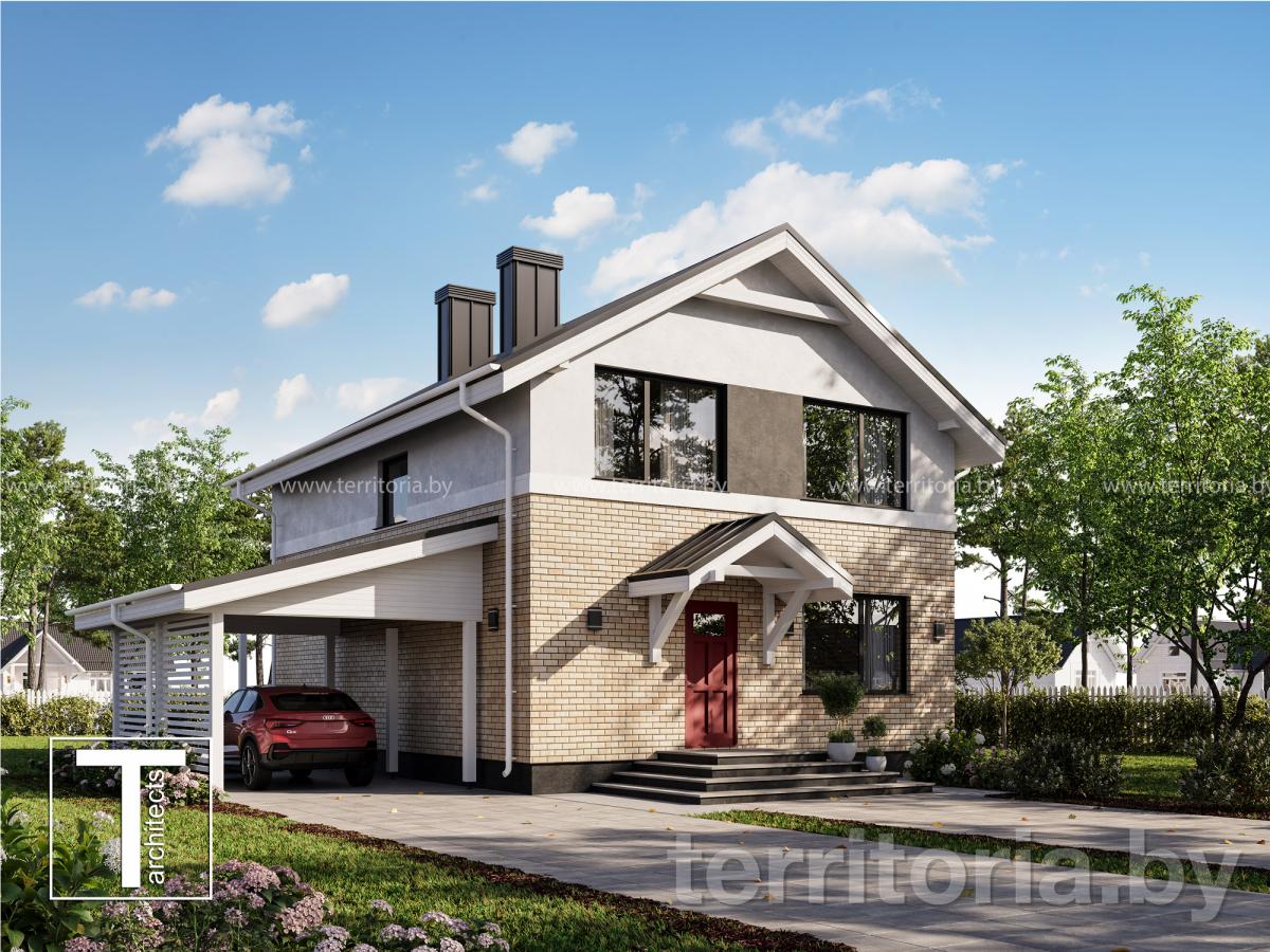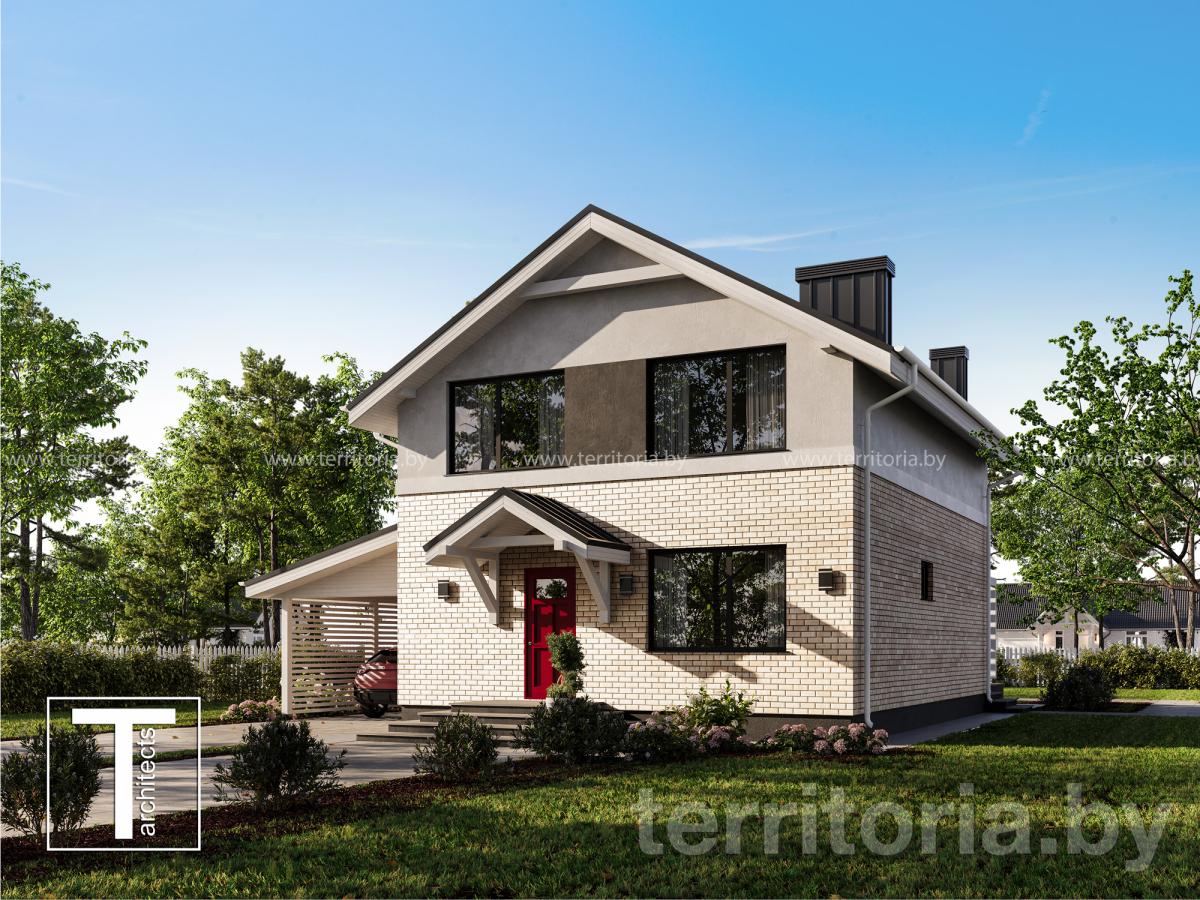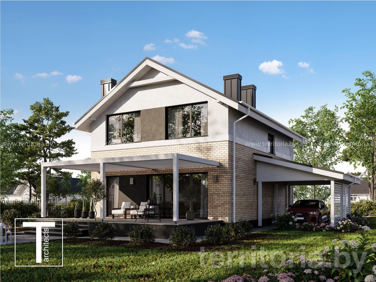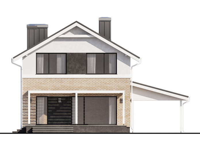 Проект дома RIO – это новый проект в новом стиле с новым функционалом! Мы реши создать проект дома с пристроенным навесом – это очень частый запрос среди наших застройщиков. Кроме этого, мы запроектировали шикарную террасу – для приятных посиделок всей семьей.На первом этаже предусмотрены: гостевая комната (или кабинет), гостиная, совмещенная с кухней, кладовая комната (она же котельная объемом 15 м3) рядом с кухней, санузел с душевой кабиной и небольшая кладовка под лестницей для уборочного инвентаря. Второй этаж вместил в себя спальню хозяев, две детские комнаты, которые при желании можно объединить в одну большую. Общая ванная комната, гардеробная и прачечная.