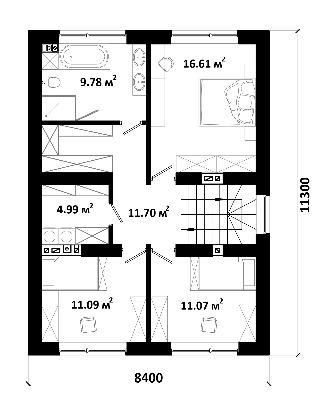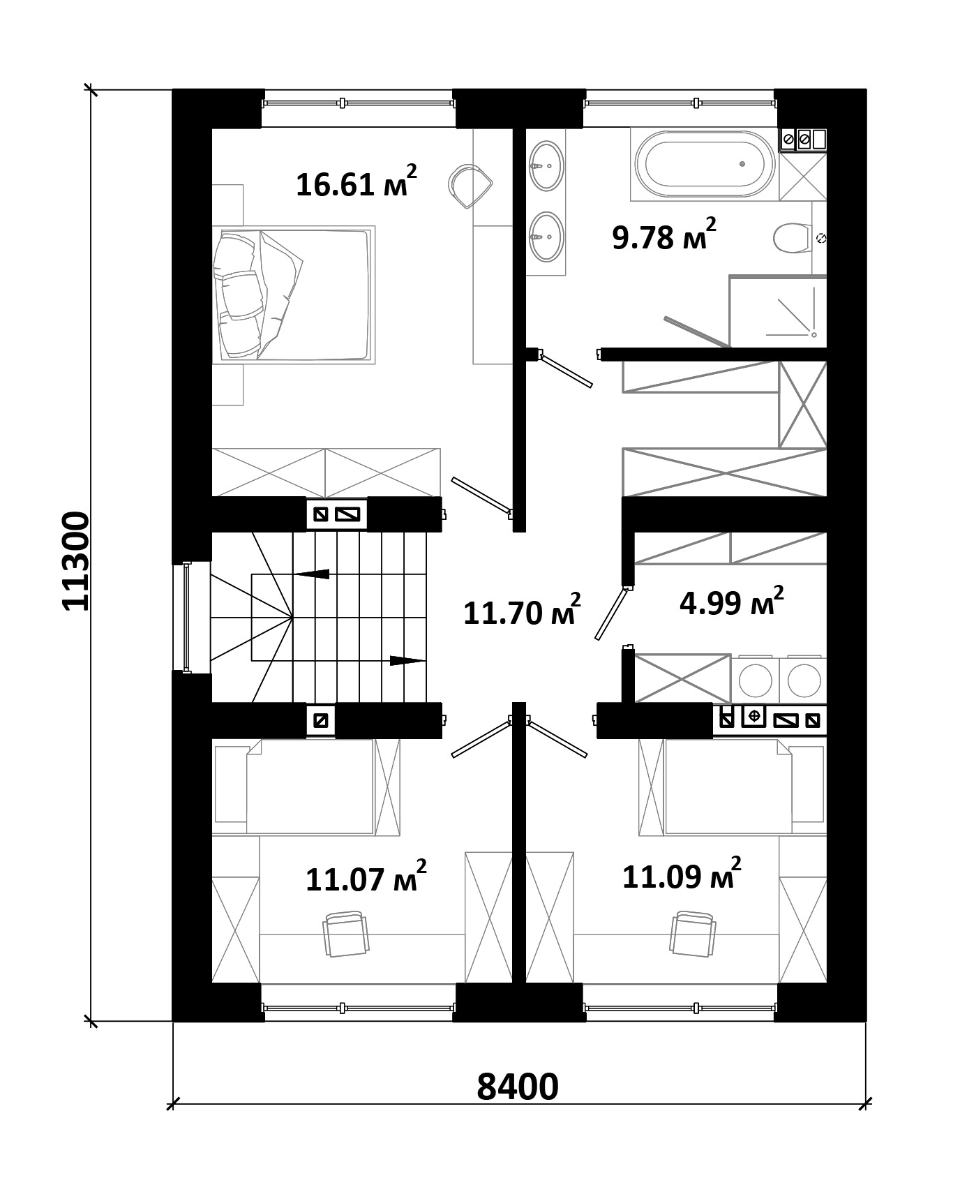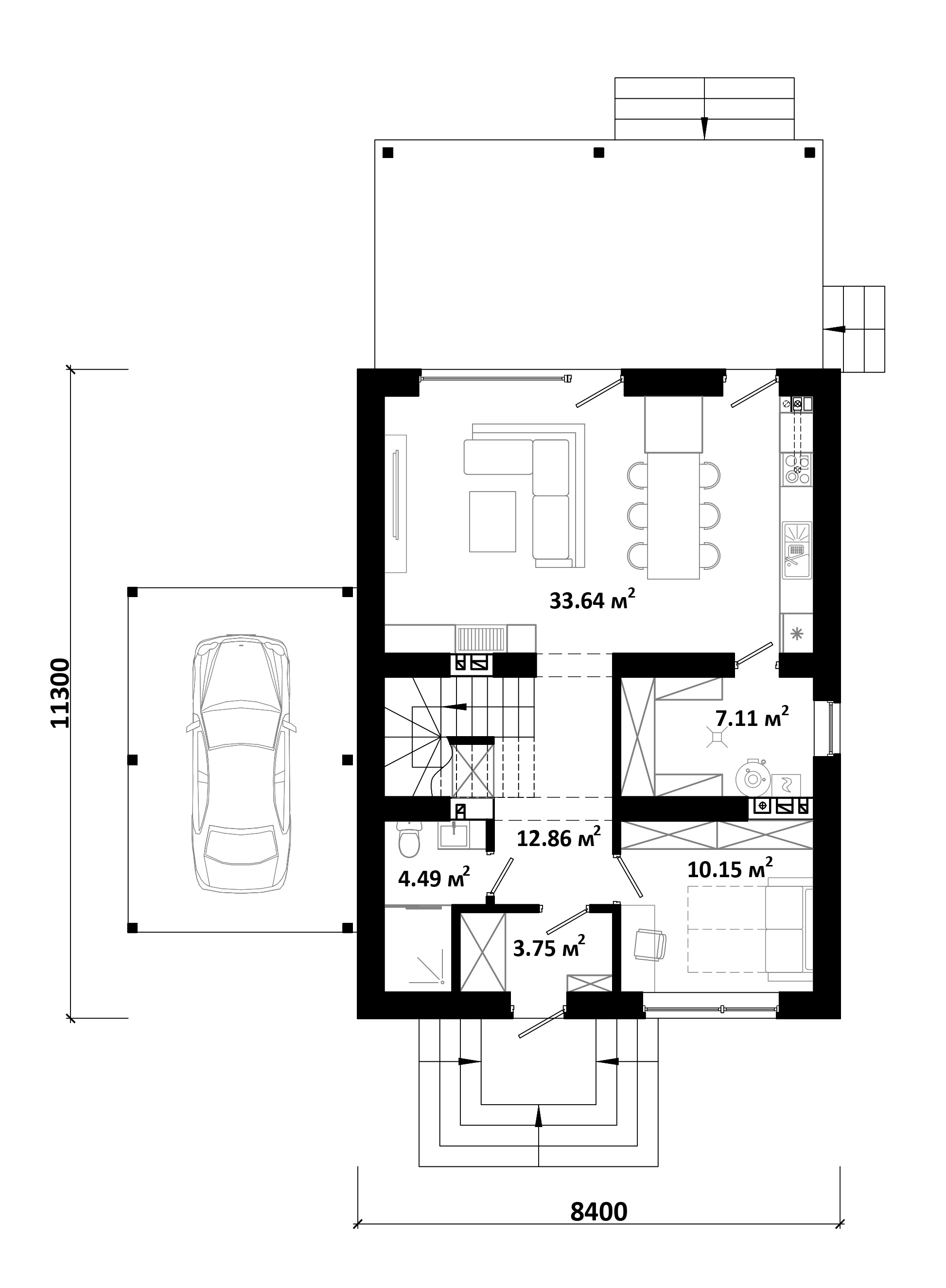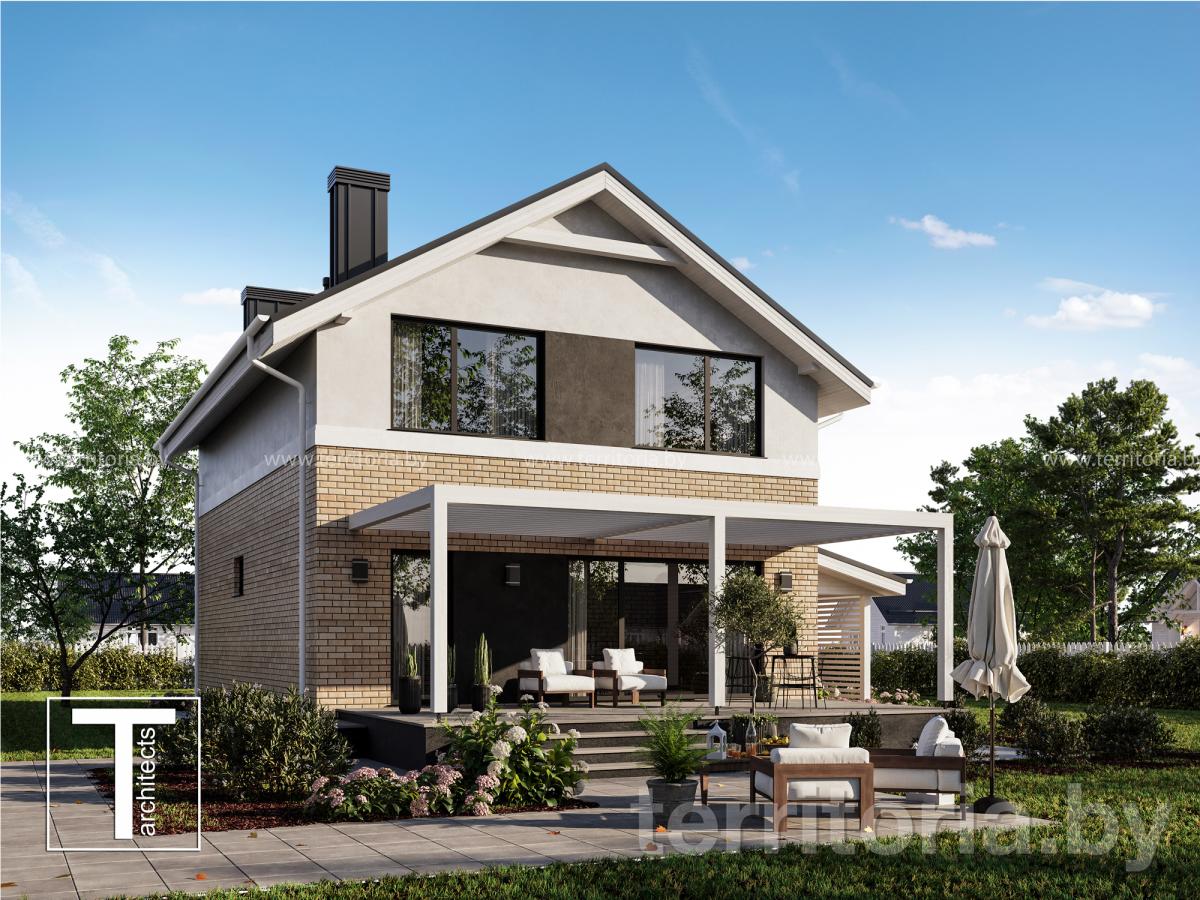Проект дома RIO – это новый проект в новом стиле с новым функционалом! Мы реши создать проект дома с пристроенным навесом – это очень частый запрос среди наших застройщиков. Кроме этого, мы запроектировали шикарную террасу – для приятных посиделок всей семьей.На первом этаже предусмотрены: гостевая комната (или кабинет), гостиная, совмещенная с кухней, кладовая комната (она же котельная объемом 15 м3) рядом с кухней, санузел с душевой кабиной и небольшая кладовка под лестницей для уборочного инвентаря. Второй этаж вместил в себя спальню хозяев, две детские комнаты, которые при желании можно объединить в одну большую. Общая ванная комната, гардеробная и прачечная.