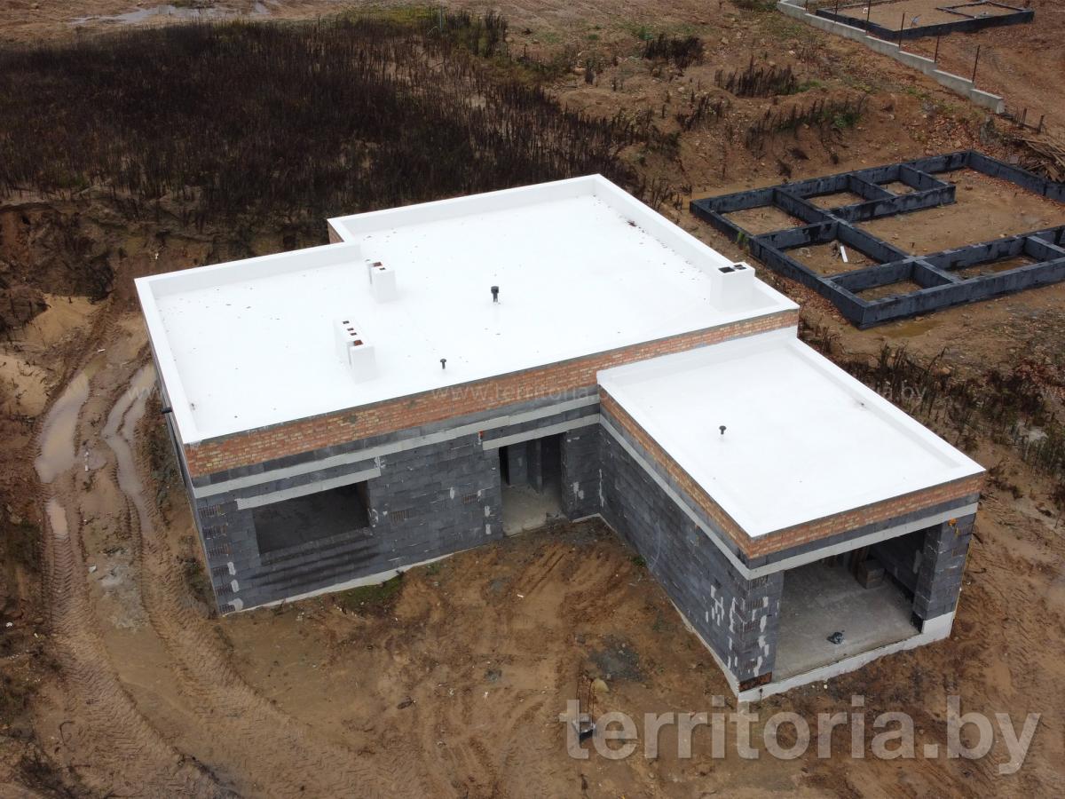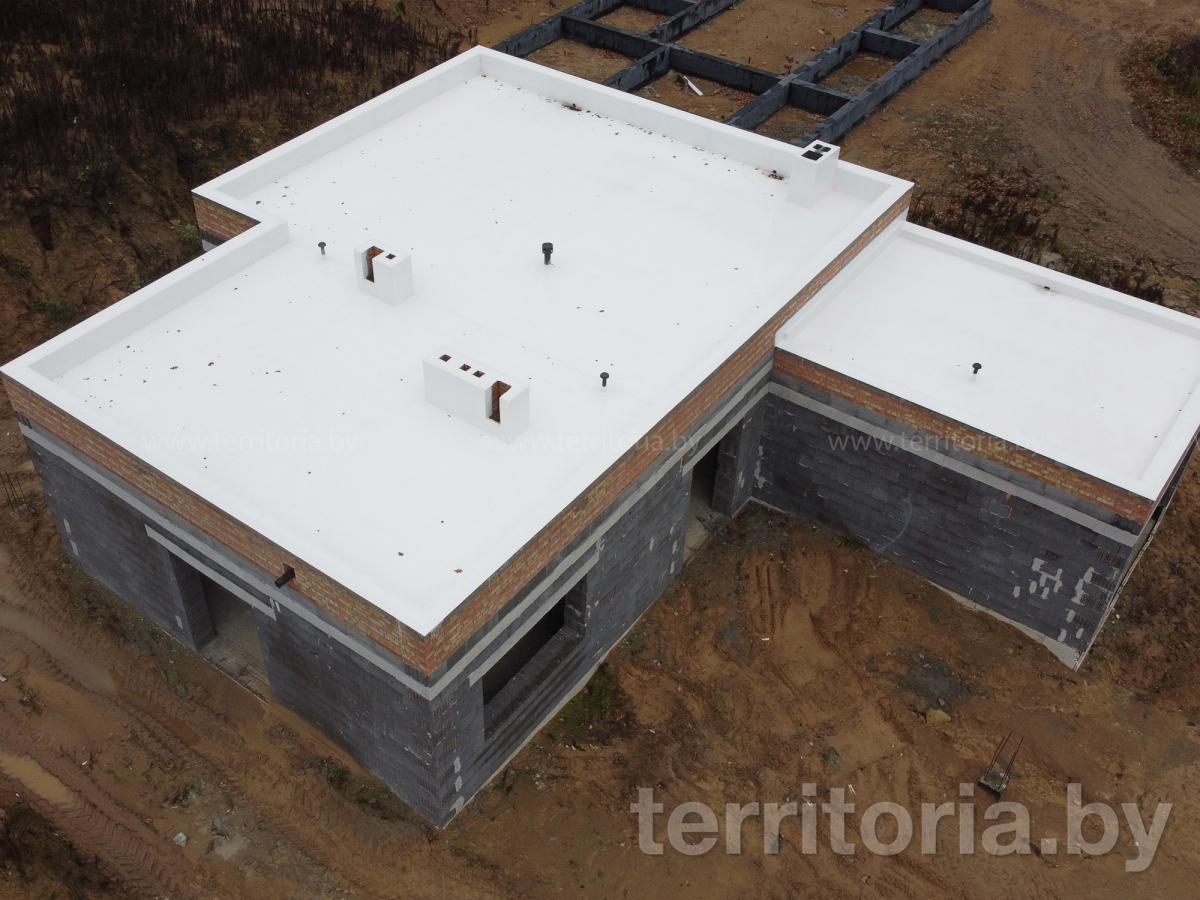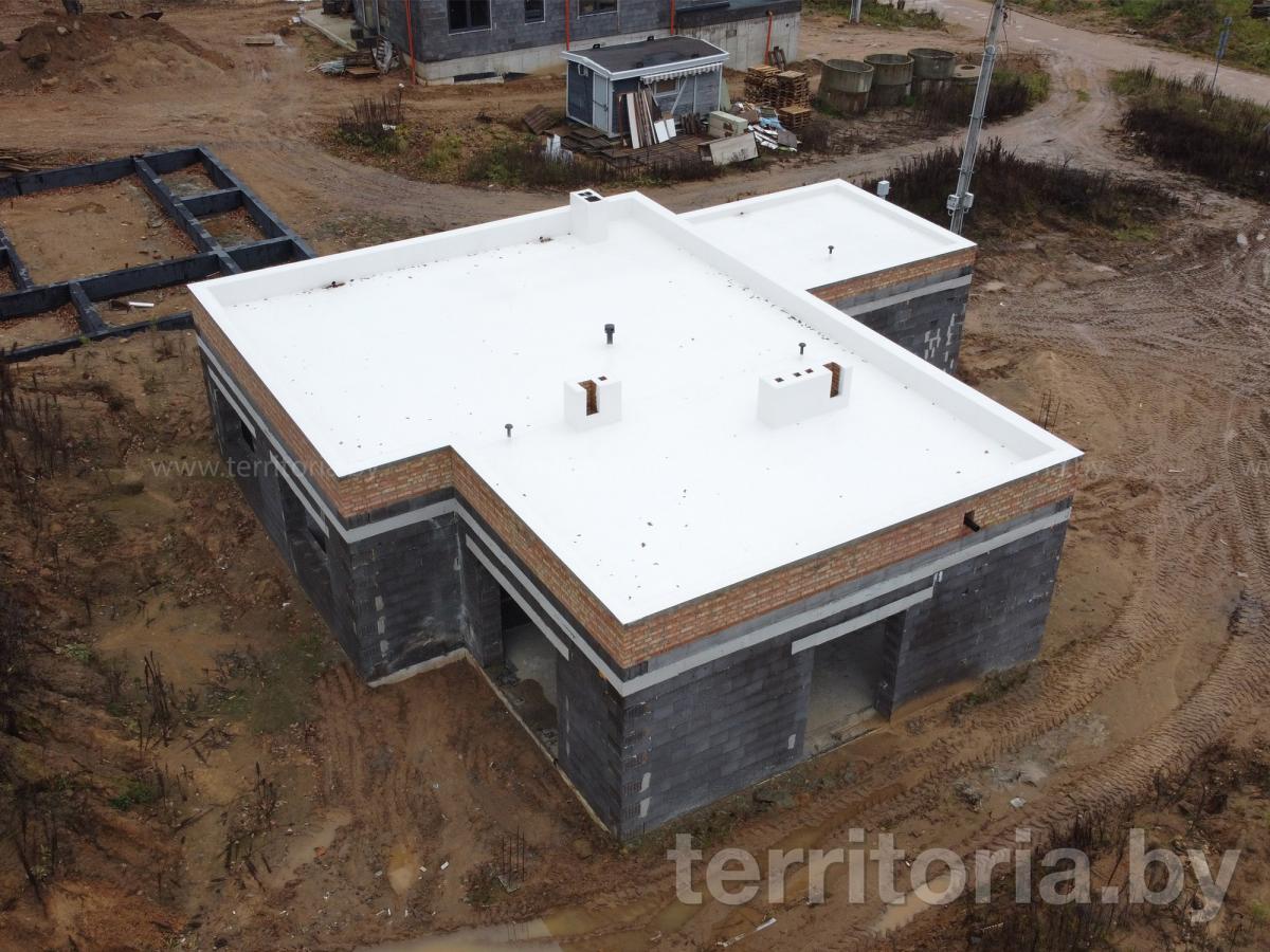 Площадь кровли: 150 м Тип кровли: Плоская Угол кровли (град.): 2-3 Высота в коньке: 4 м Тип отопления: