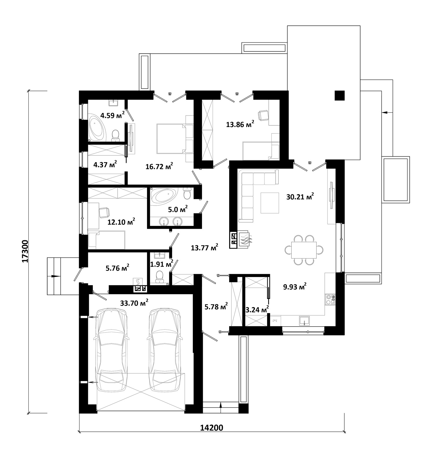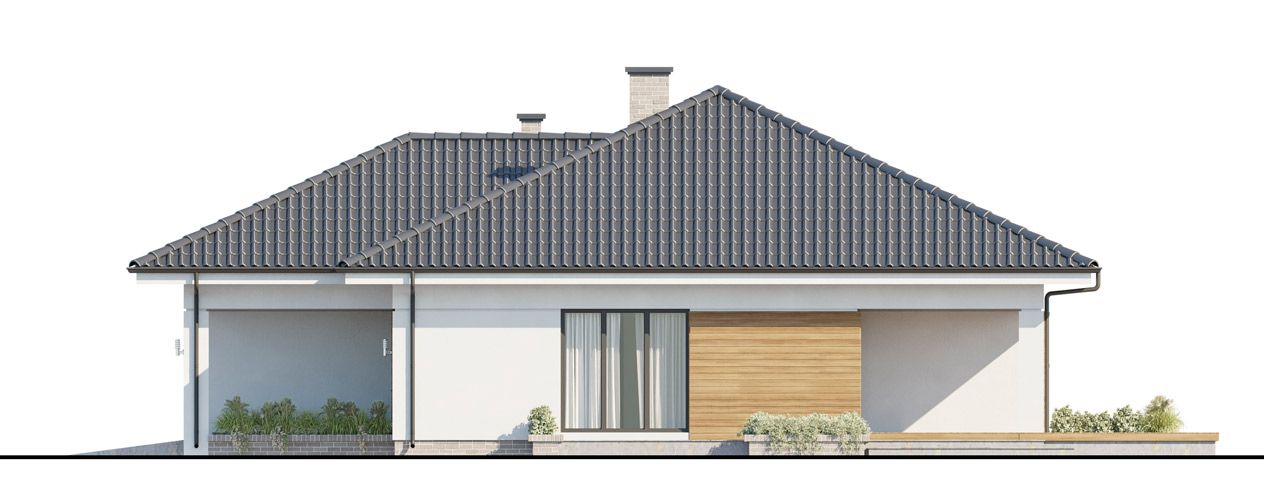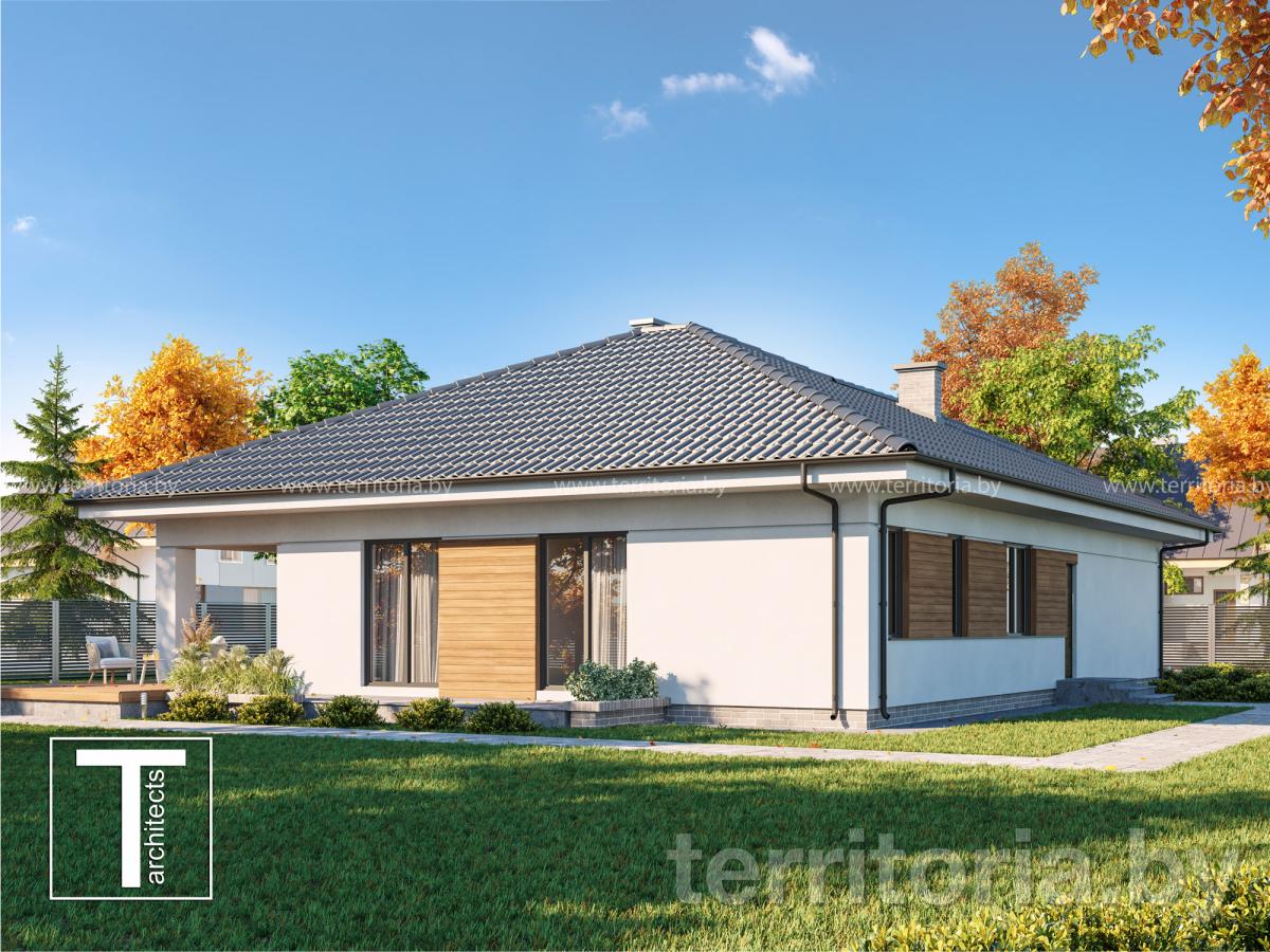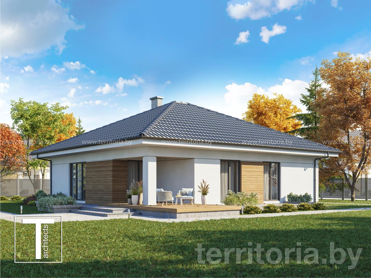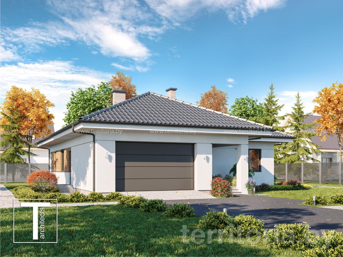 Проект одноэтажного дома с гаражом из блоков ARIEL
