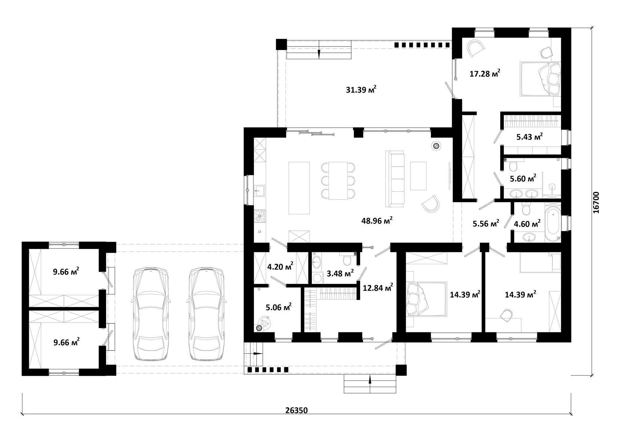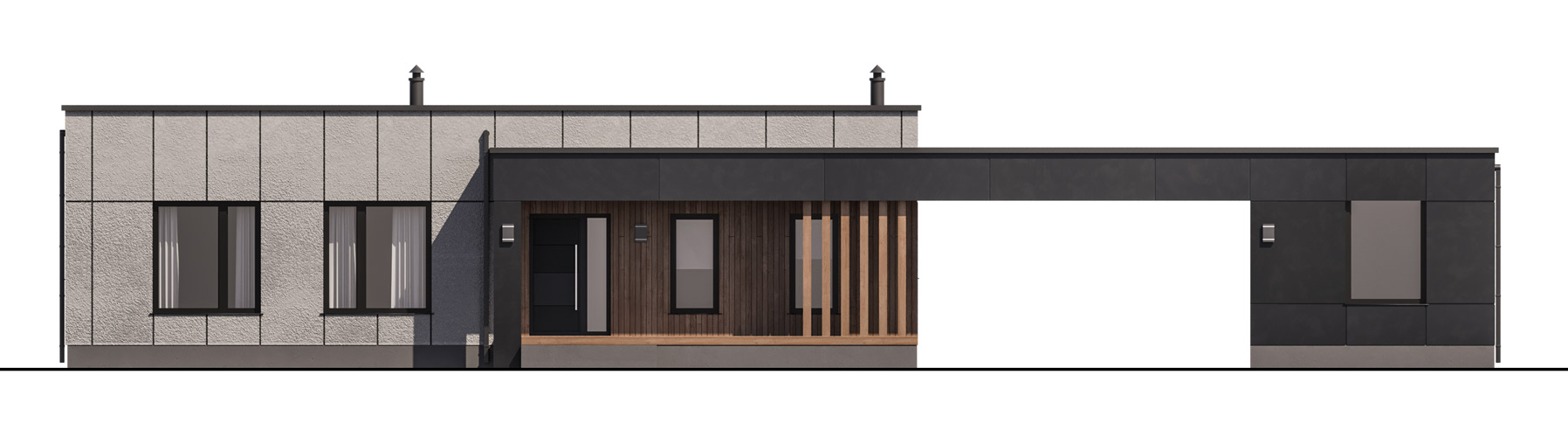 С архитектурной точки зрения, вроде бы обычная пристройка, накрывается общим объемом крыши. Что делает ее неотъемлемой частью дома. В остальном это все тот же прекрасный дом BERGEN с тремя спальнями и шикарной дневной зоной)