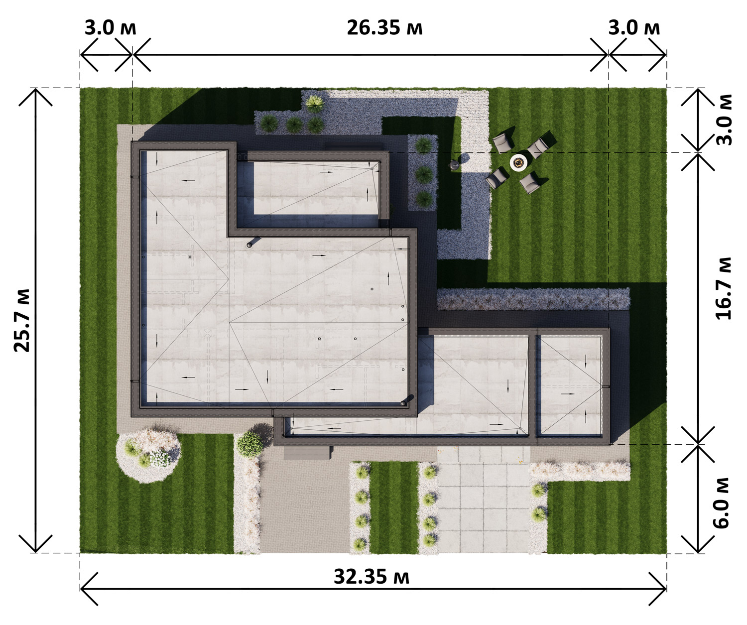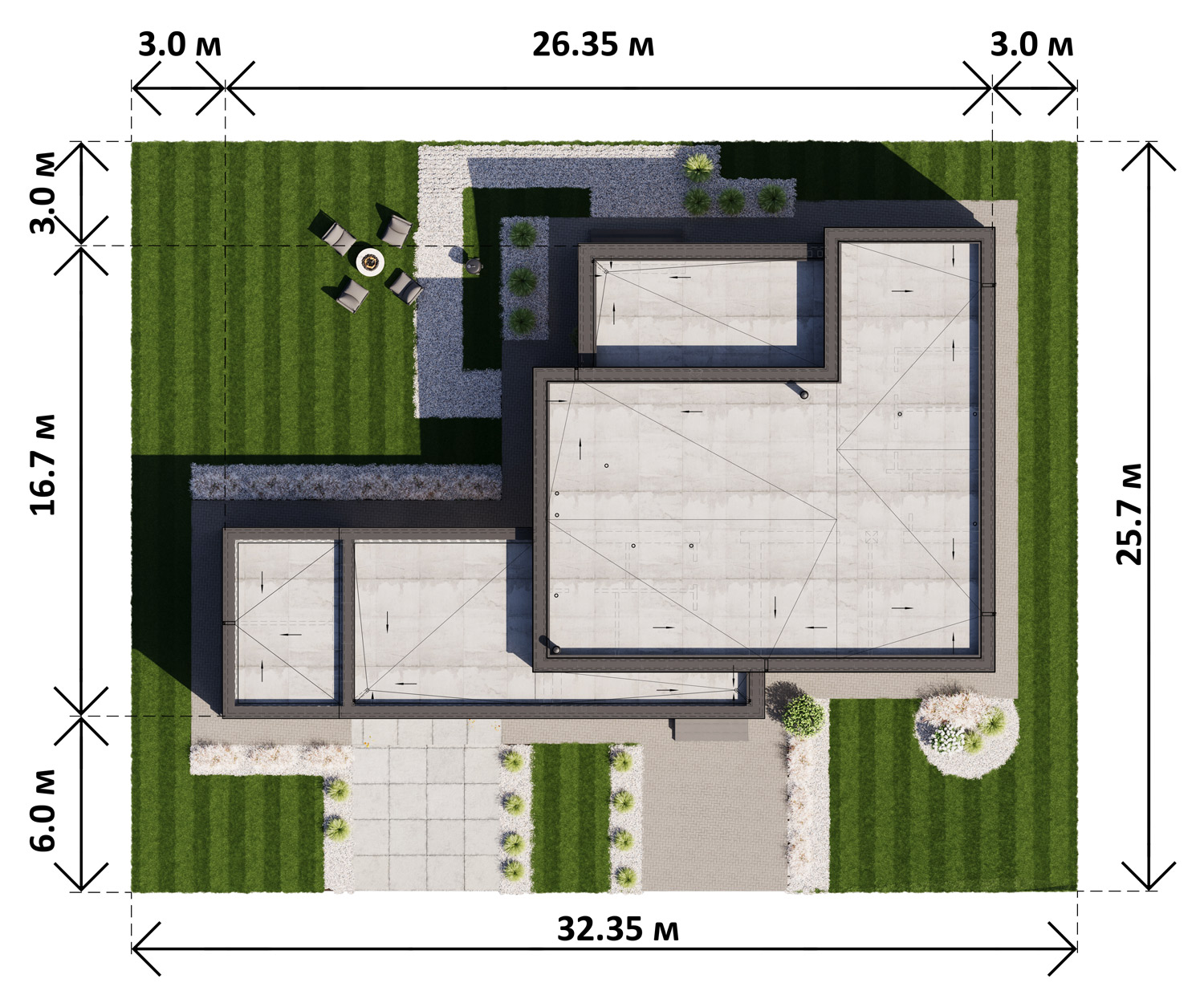 Площадь застройки: 307 м Размеры участка: 32.35 x 25.7 м Строительный объем: 757 м Срок подготовки проекта: 3-5 днейСтроительство: ~ 442 700 BYN