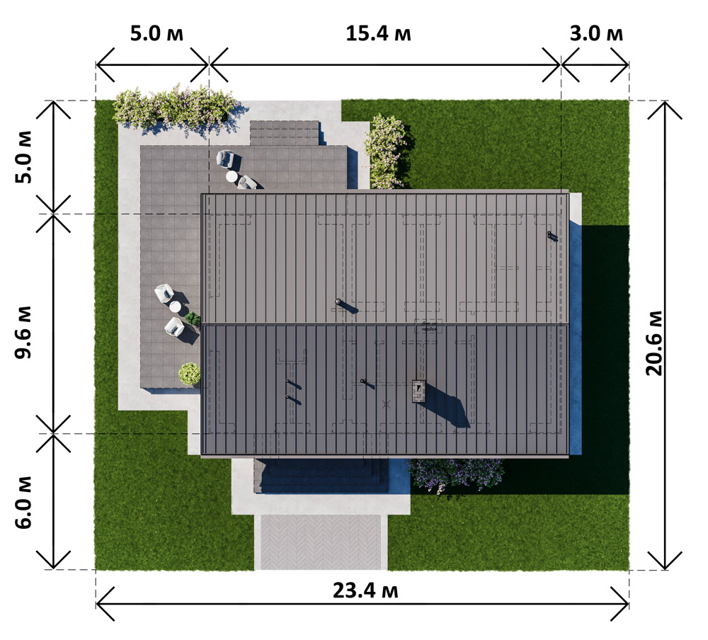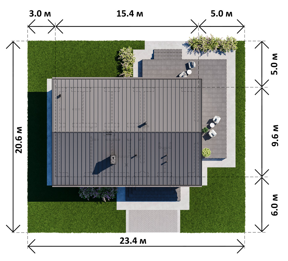 - Покрытие кровли: черепица, черепица ЗАБУДОВА