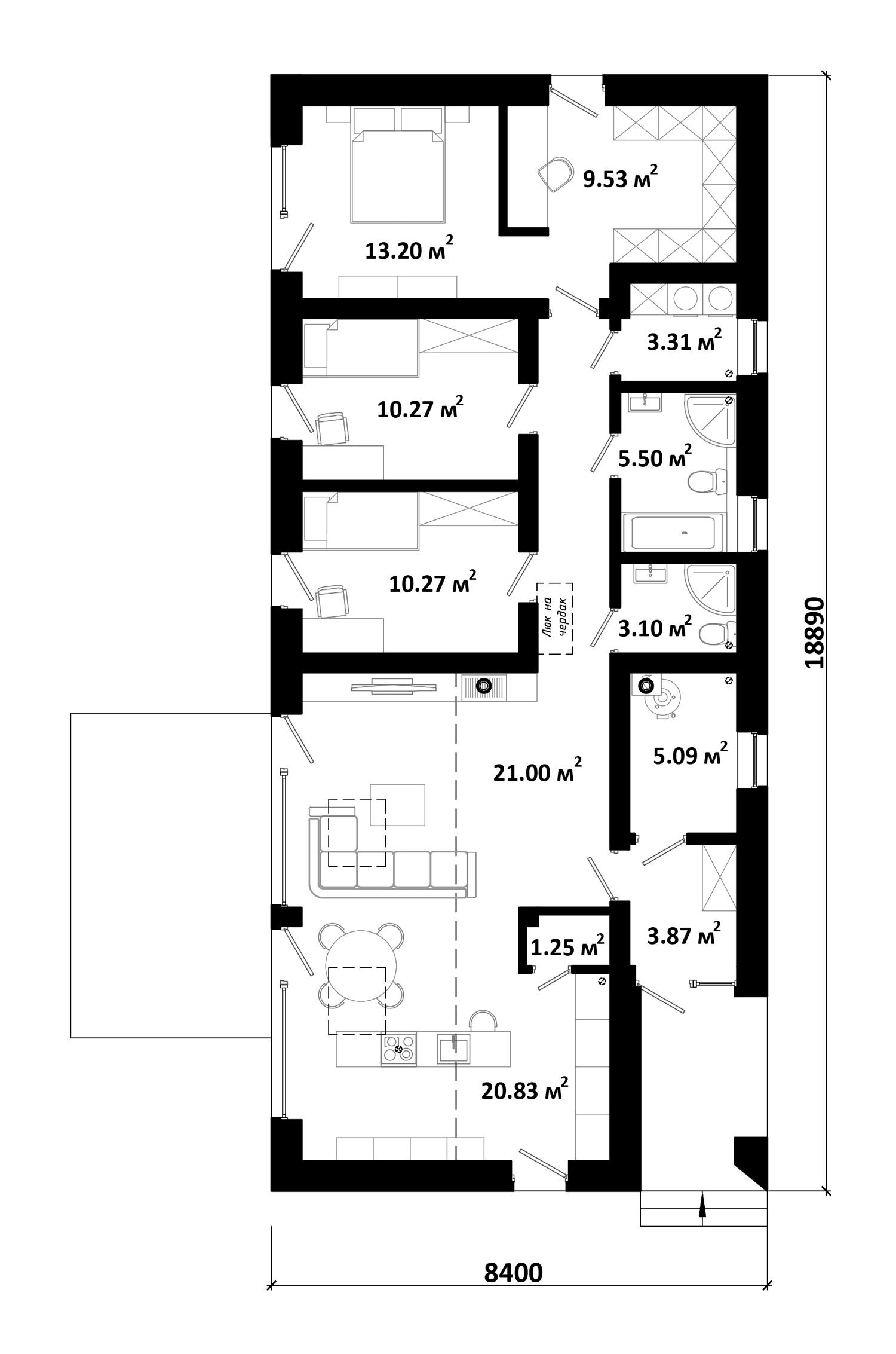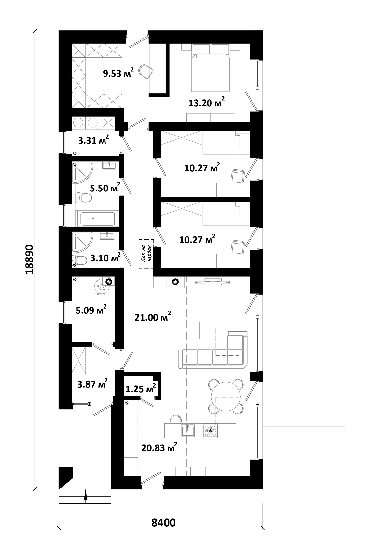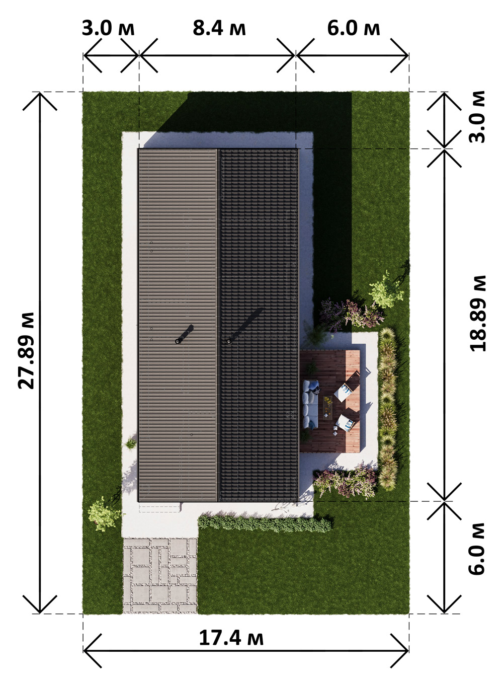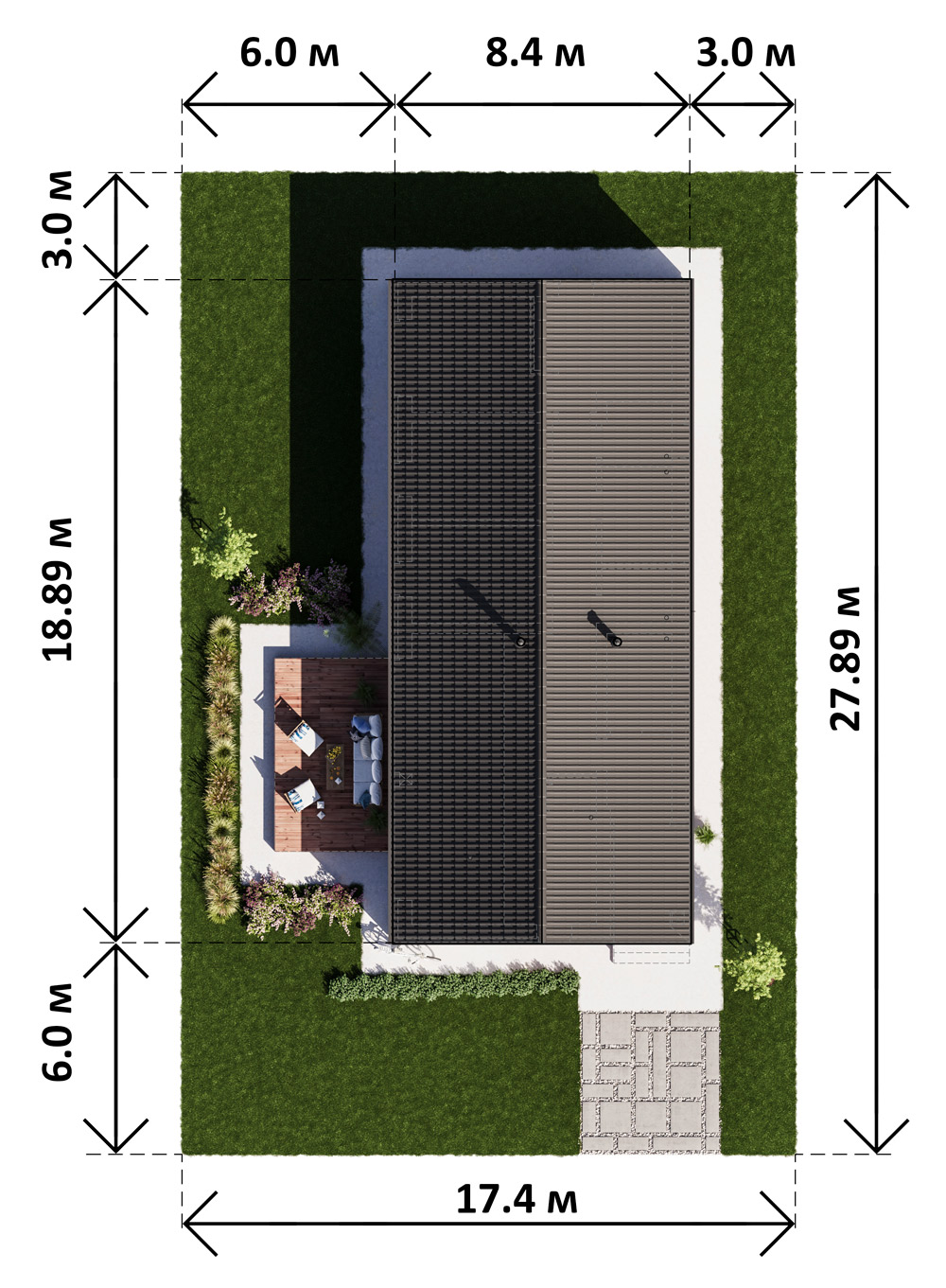 Площадь застройки: 180 м Размеры участка: 17,4 х 27,89 м Строительный объем: 740 м Срок подготовки проекта: 3-5 днейСтроительство: ~ 218 500 BYN