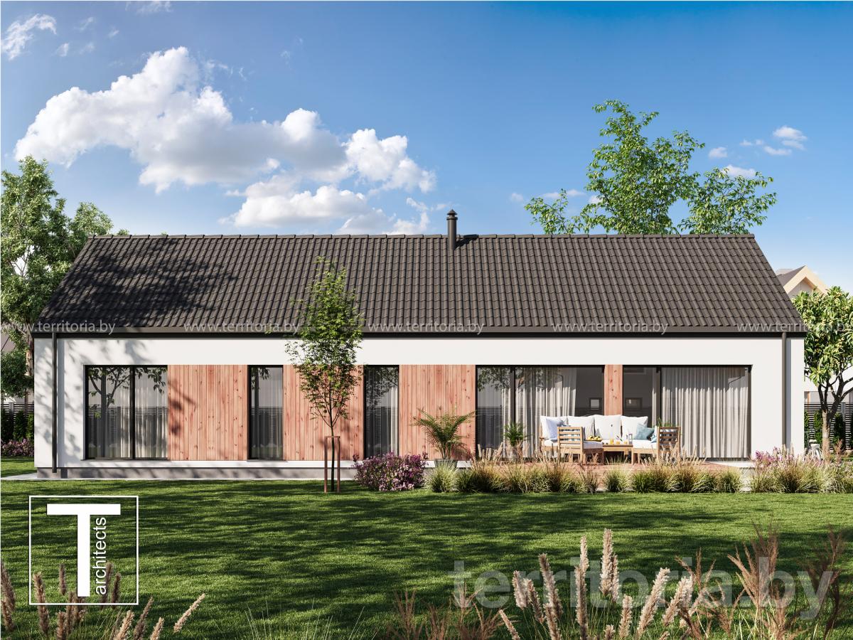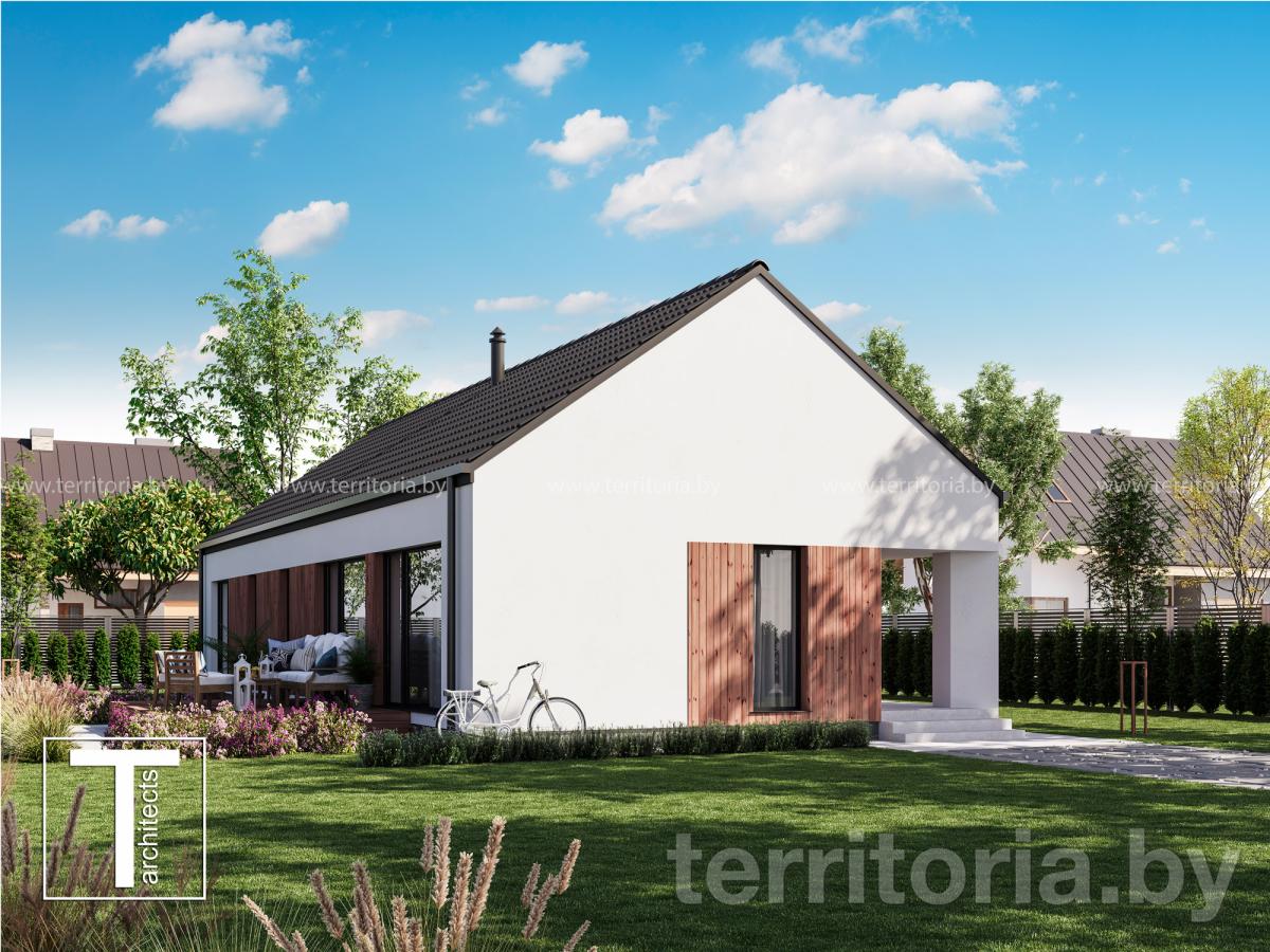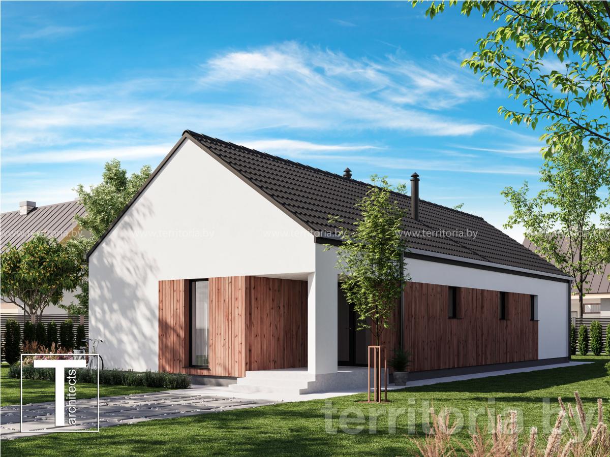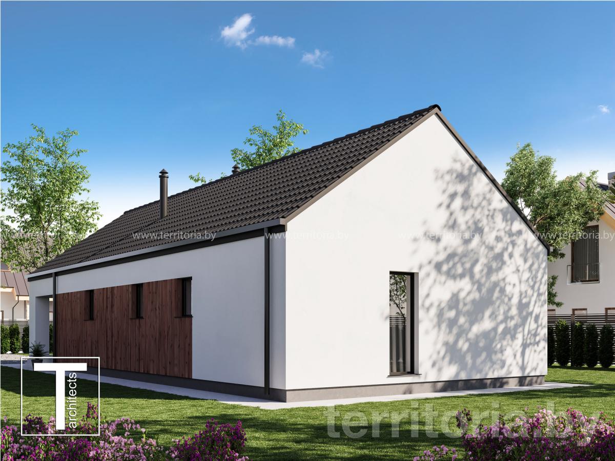 Проект одноэтажного дома с двухскатной кровлей Экономичный-2