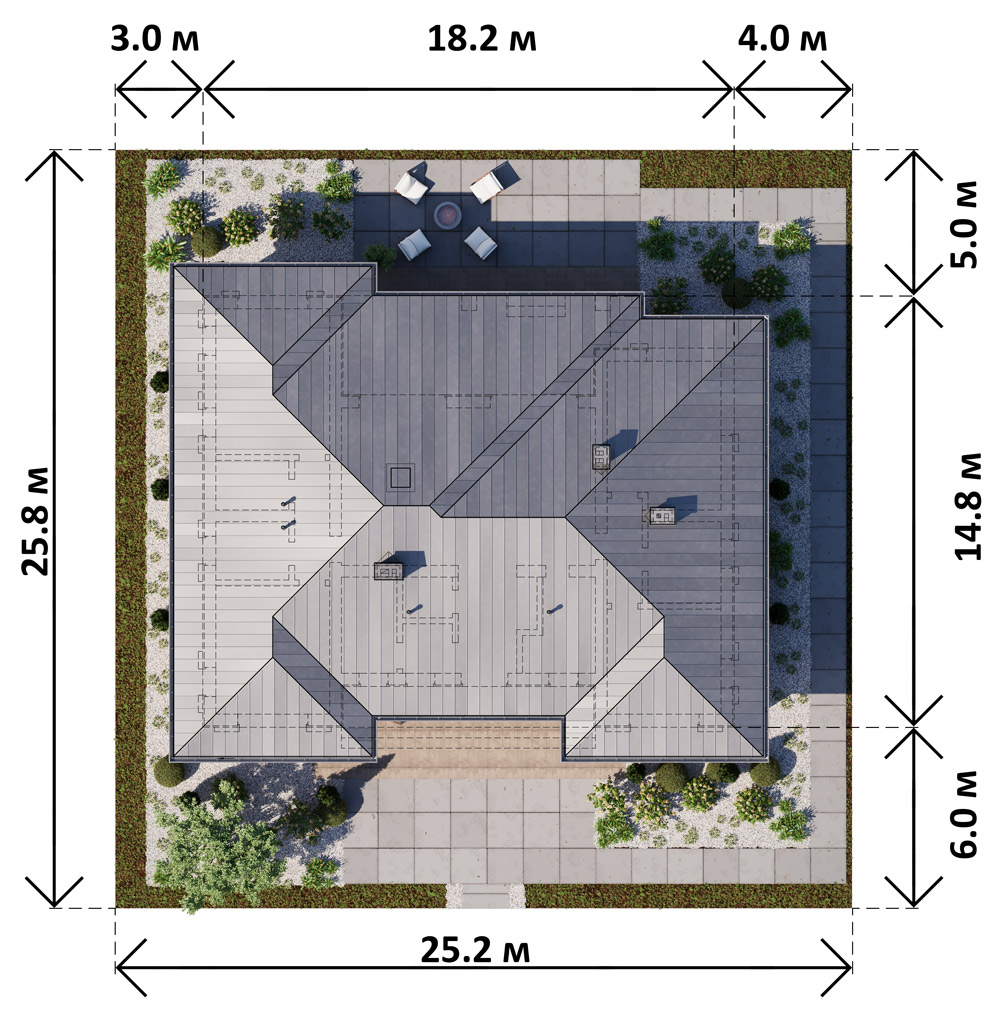 Размеры участка: 25 х 26 м